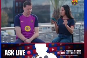 体育资讯10月30日讯 巴萨门将什琴斯尼今日参与了球队的直播节目,节目中他回答了来自球迷的实时提问,还进行了一个快问快答挑战。